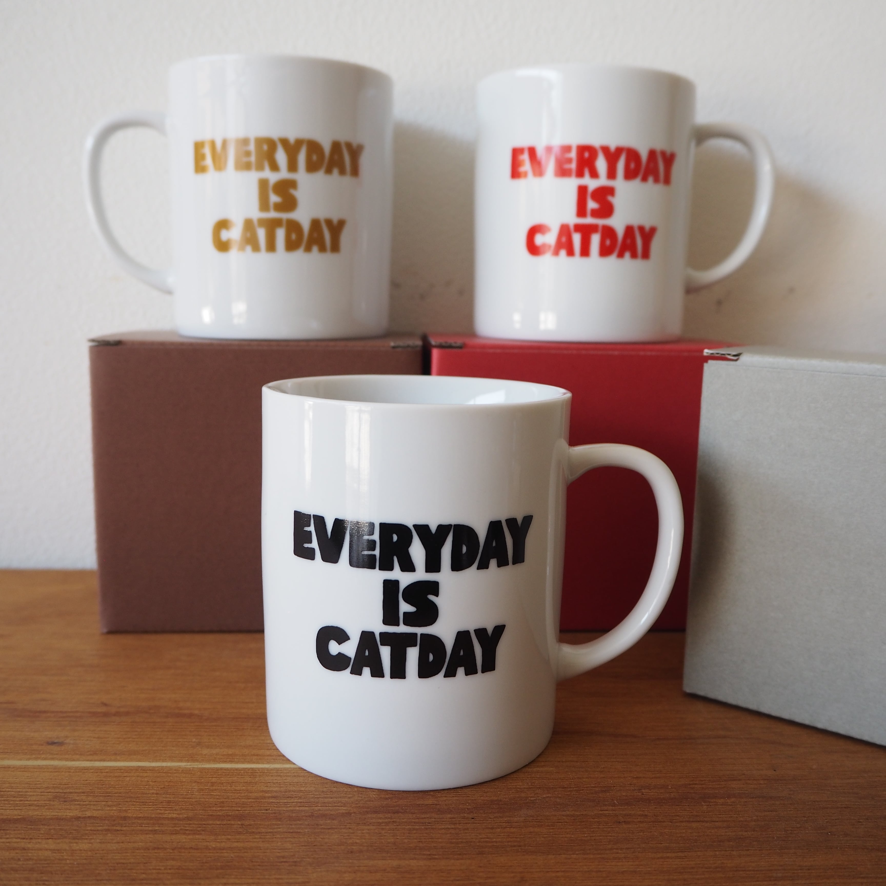 黒・赤・茶、それぞれ「EVERYDAY IS CATDAY」がプリントされた反対面は無地です。