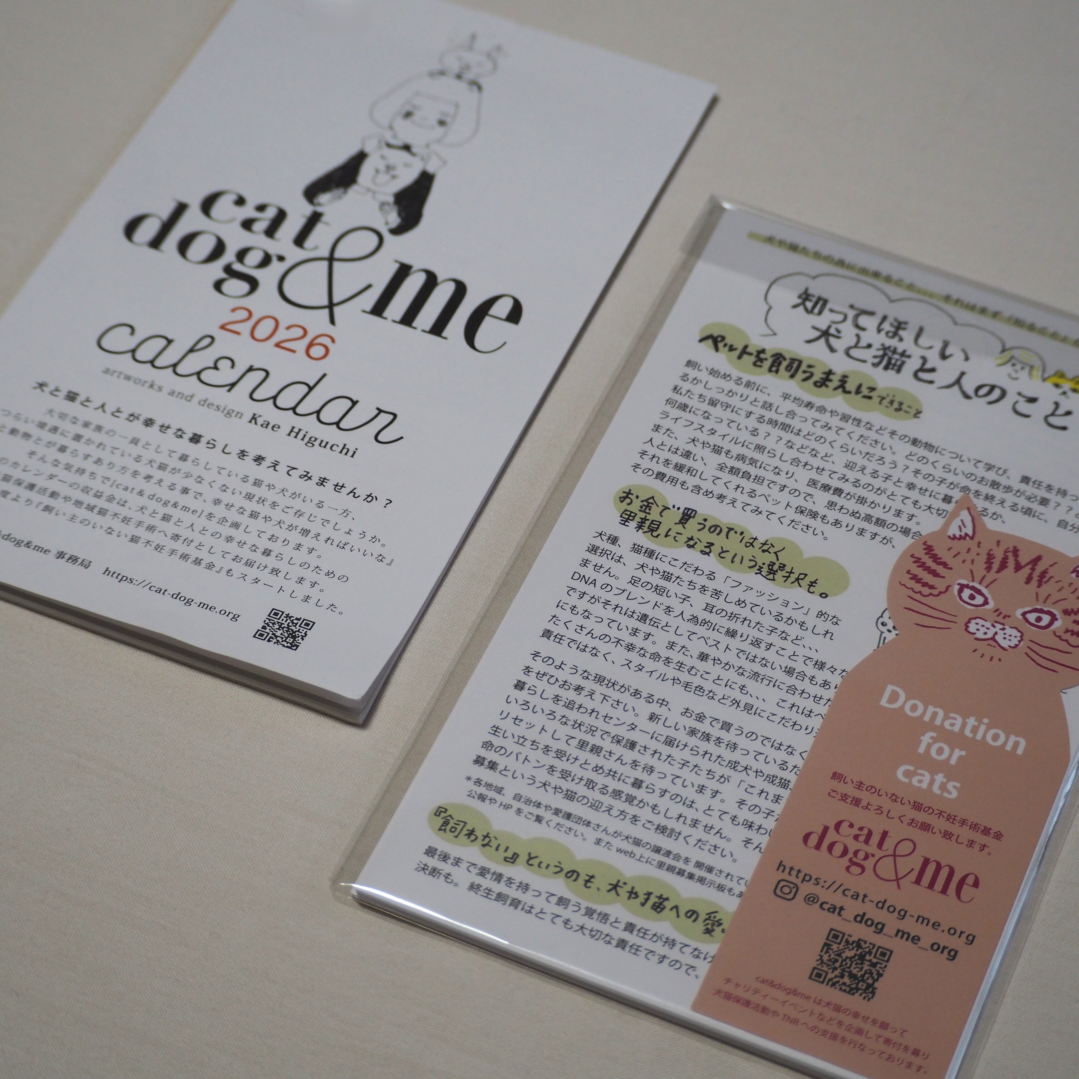 14枚綴り(表紙+1カ月毎12枚+「知ってほしい犬と猫と人のこと」などの台紙、糊付けなし)